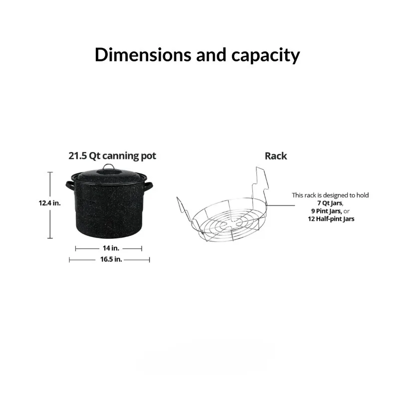 Will hold up to 7 quart jars, 9 pint jars, or 12 one-half pint jars