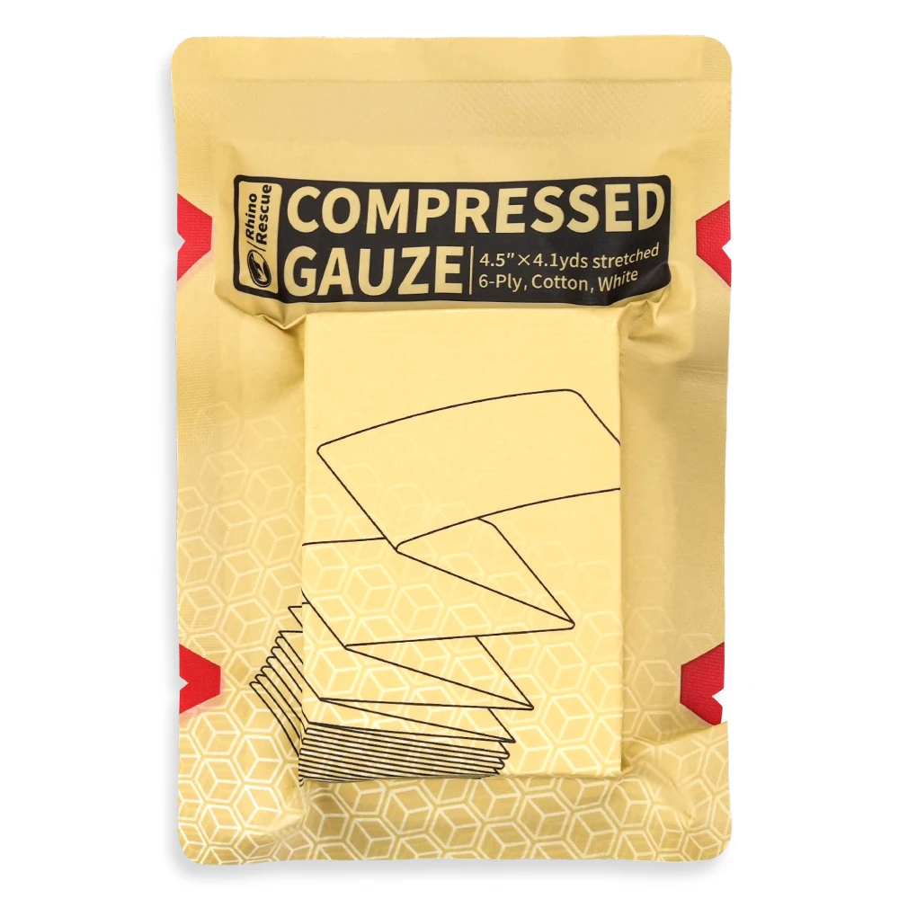 [Easy to Carry] It is a 4.5" x 4.1yd gauze with z-folded compressed pack. The ultra-compact size makes it easily to fit any IFAK and medic trauma kits.